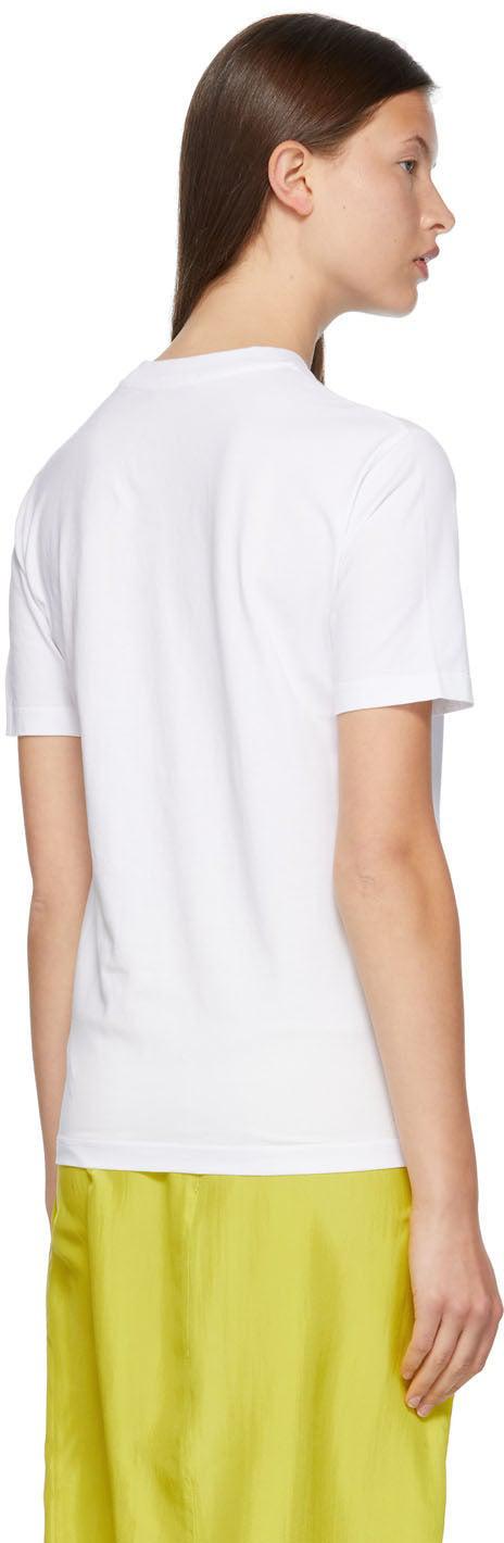 Short sleeve cotton jersey T-shirt in white. Rib knit crewneck collar. Logo embroidered in grey and gathering at chest. Supplier color: White 100% cotton. Brand: Nina Ricci
