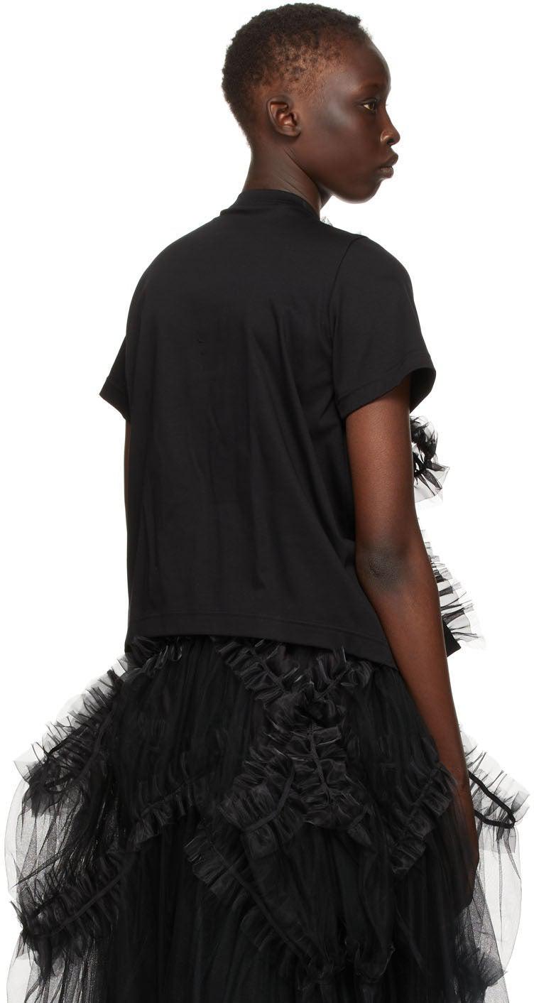 Short sleeve cotton jersey T-shirt in black. Crewneck collar. Tonal nylon mesh and georgette overlay featuring ruffled detailing at front. Supplier color: Black Body: 100% cotton. Trim 1: 100% nylon. Trim 2: 100% polyester. Brand: Noir Kei Ninomiya