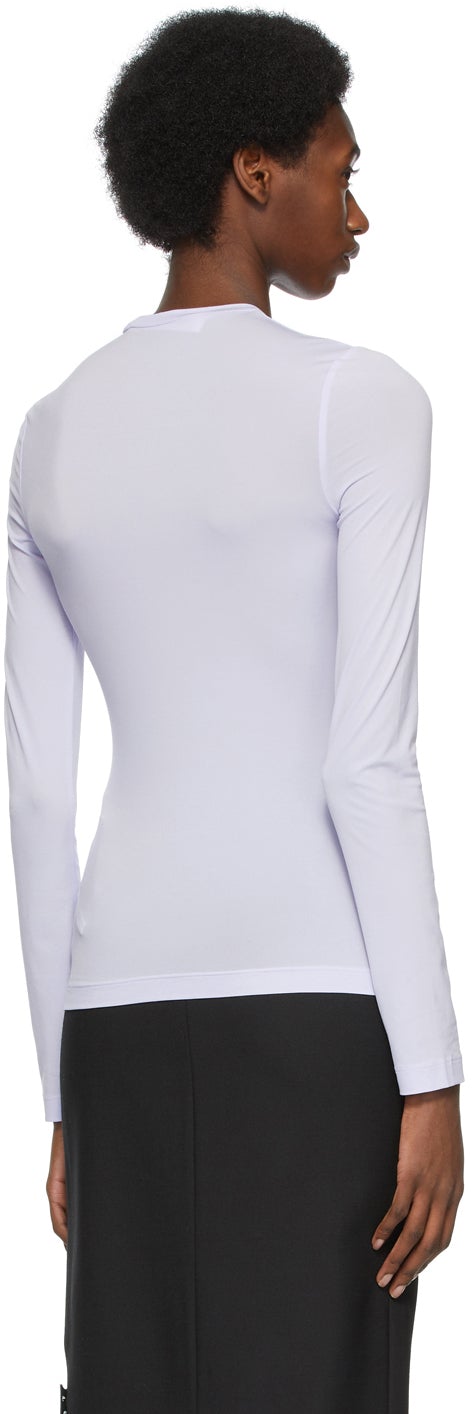 Long sleeve nylon jersey T-shirt in purple. Crewneck collar. Logo printed in black at chest. Supplier color: Lilac 100% polyamide. Brand: Off-White
