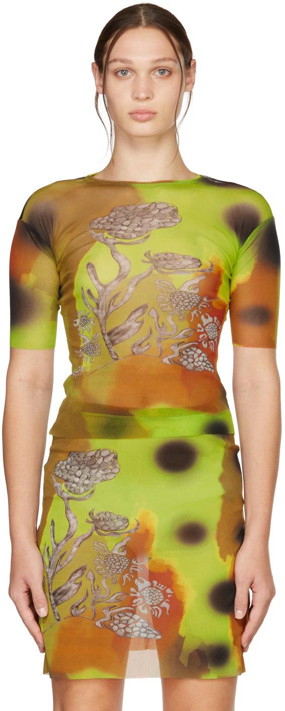Short sleeve nylon mesh T-shirt in multicolor. Crewneck collar. Graphic printed in tones of grey at front. Supplier color: Yellow 100% polyamide. Brand: Paula Canovas Del Vas