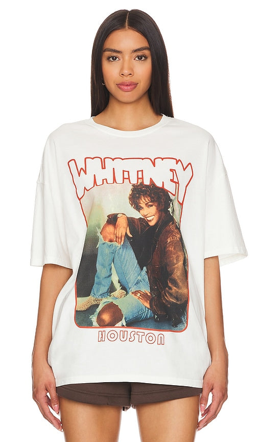 Philcos Whitney Houston Smile Oversized Tee in White. - size L (also in M, XL/1X, XXL/2X) Philcos Whitney Houston Smile Oversized Tee in White. - size L (also in M, XL/1X, XXL/2X) 100% cotton. Made in China. Machine wash. Front screenprint graphic. Jersey fabric with ribbed neckline. PLCO-MS10. WNY2360XX. Shop the latest in fashion from Philcos