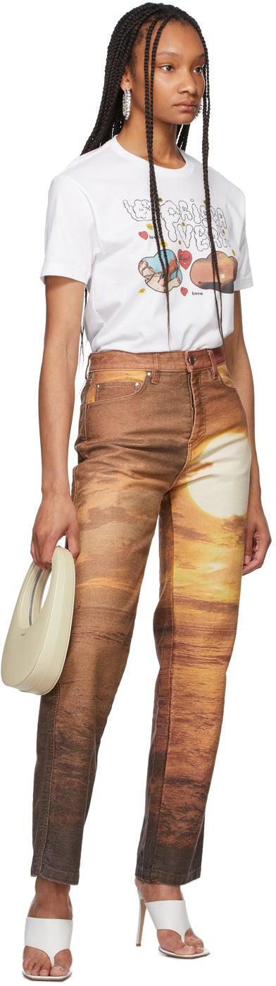Short sleeve cotton jersey T-shirt in white. Rib knit crewneck collar. Logo printed in black and graphic printed in multicolor at front. Supplier color: White 100% cotton. Brand: PRISCAVera