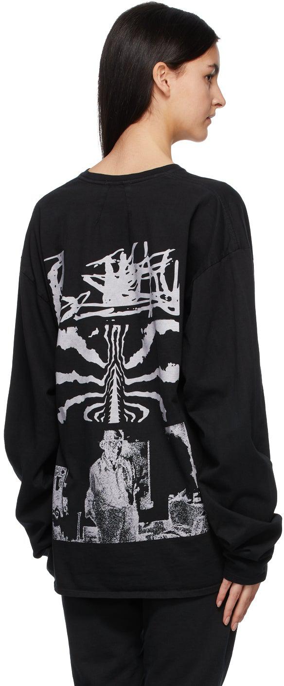 Long sleeve cotton jersey T-shirt in black. Rib knit crewneck collar. Logo printed in white at front. Graphic printed in white at back. Supplier color: Black 100% cotton. Brand: Rhude