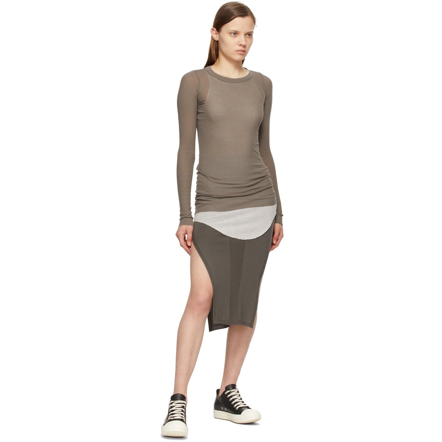 Rick Owens Grey Silk Rib Long Sleeve T-Shirt