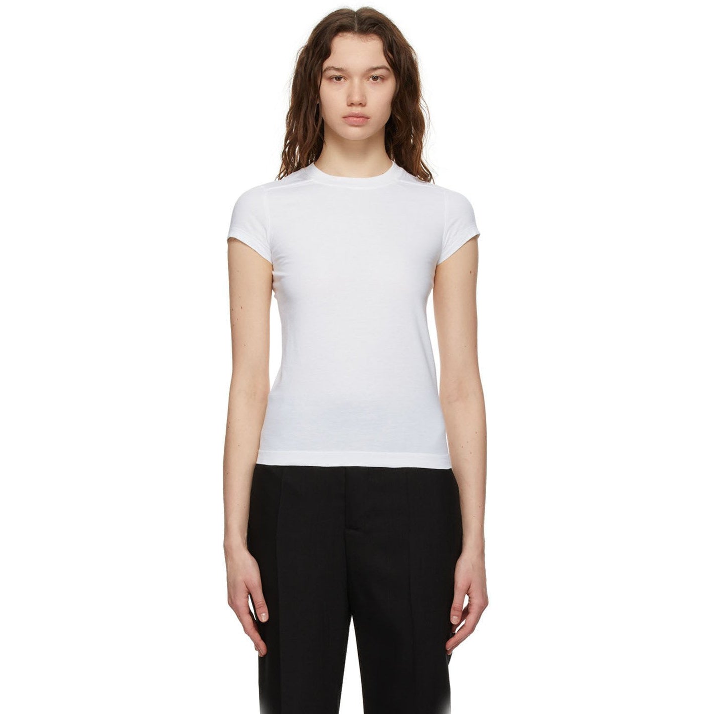 Short sleeve cotton jersey T-shirt in off-white. Rib knit crewneck collar. Supplier color: Milk 100% cotton. Brand: Rick Owens