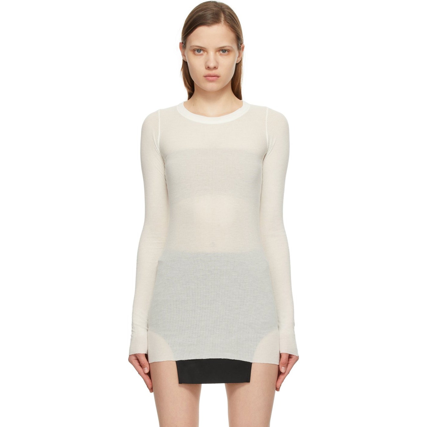 Rick Owens Off-White Silk Rib Long Sleeve T-Shirt
