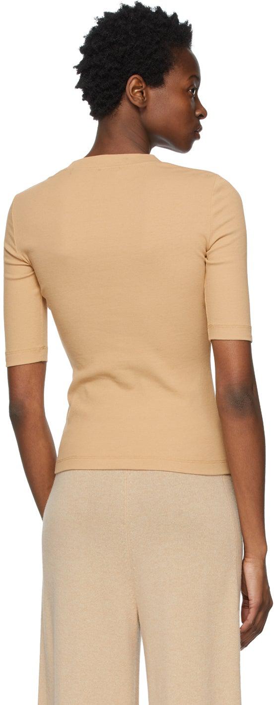 Half sleeve cotton jersey T-shirt in beige. Rib knit crewneck collar. Supplier color: Camel 100% cotton. Brand: Rosetta Getty