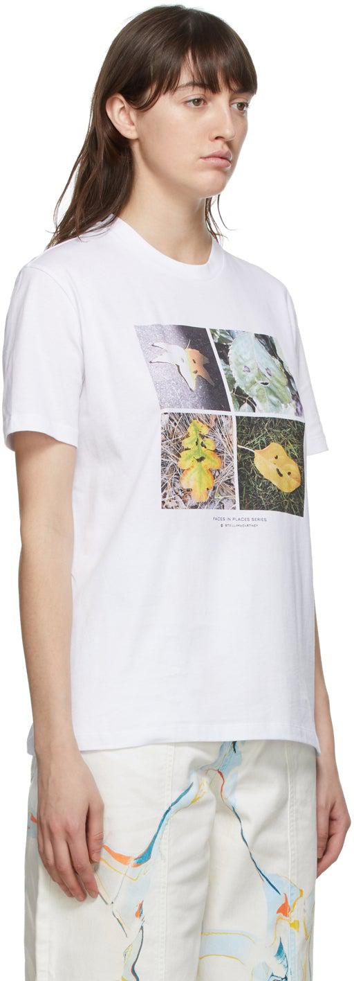 Short sleeve sustainably-sourced organic cotton jersey T-shirt in white. Rib knit crewneck collar. Logo, graphic, and text printed in multicolor at front. Made from cruelty-free, non-animal materials. Supplier color: White 100% organic cotton. Brand: Stella McCartney