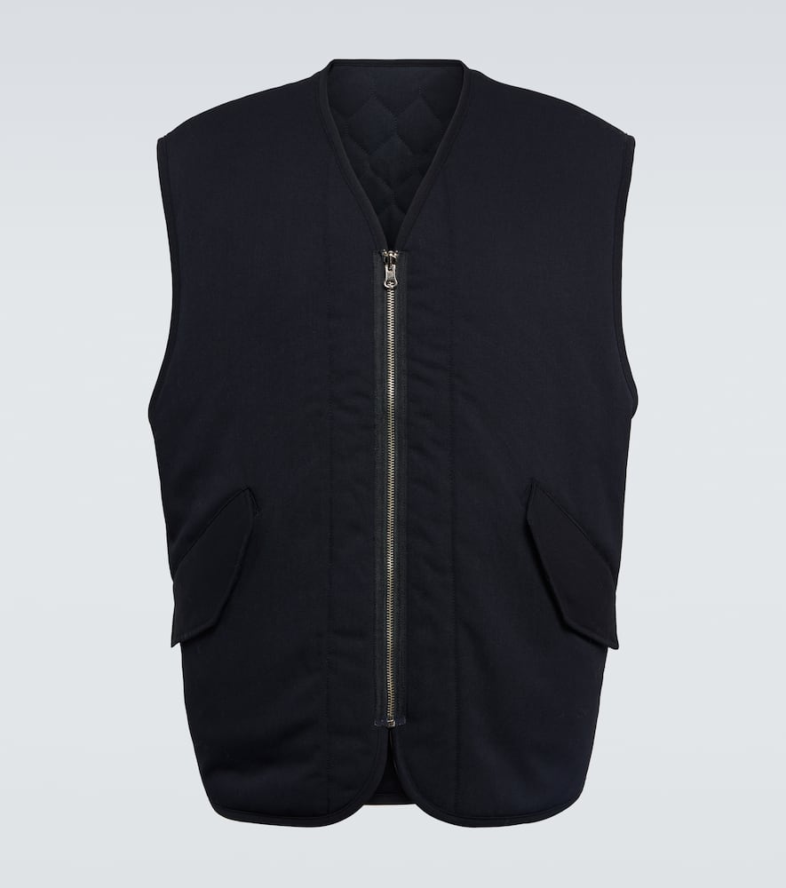 Material: 78% polyester, 5% elastane. Made in Korea. Lining: 80% polyester, 20% cotton. Designer color name: Navy. Care instructions: dry clean. Filling: 100% polyester. Shop the latest mens The Frankie Shop Gilets.