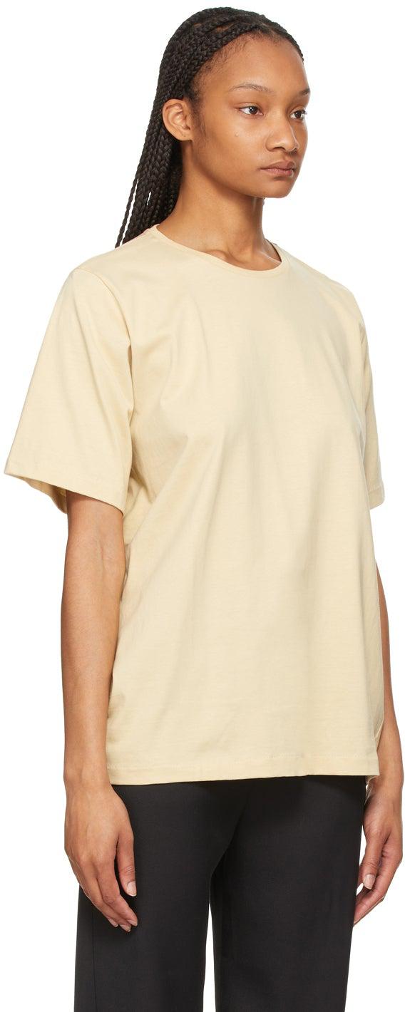 Short sleeve organic cotton jersey T-shirt in beige. Rib knit crewneck collar. Supplier color: Champagne 100% organic cotton. Brand: Totême