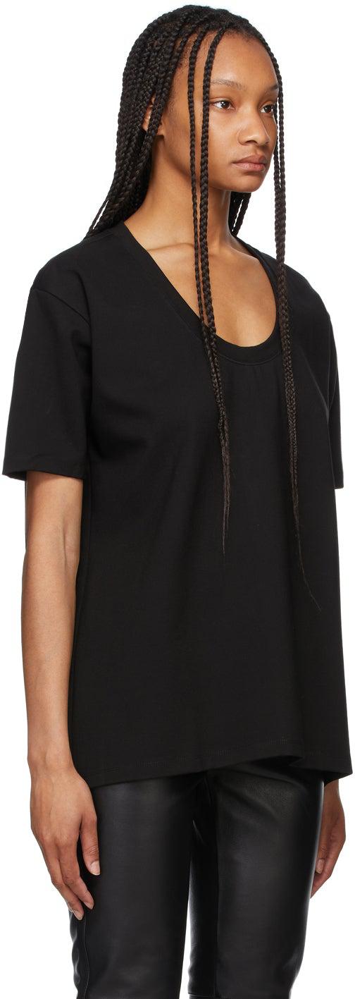Short sleeve stretch viscose-blend jersey T-shirt in black. Scoop neck collar. Supplier color: Black 75% viscose, 21% polyamide, 4% elastane. Brand: Totême