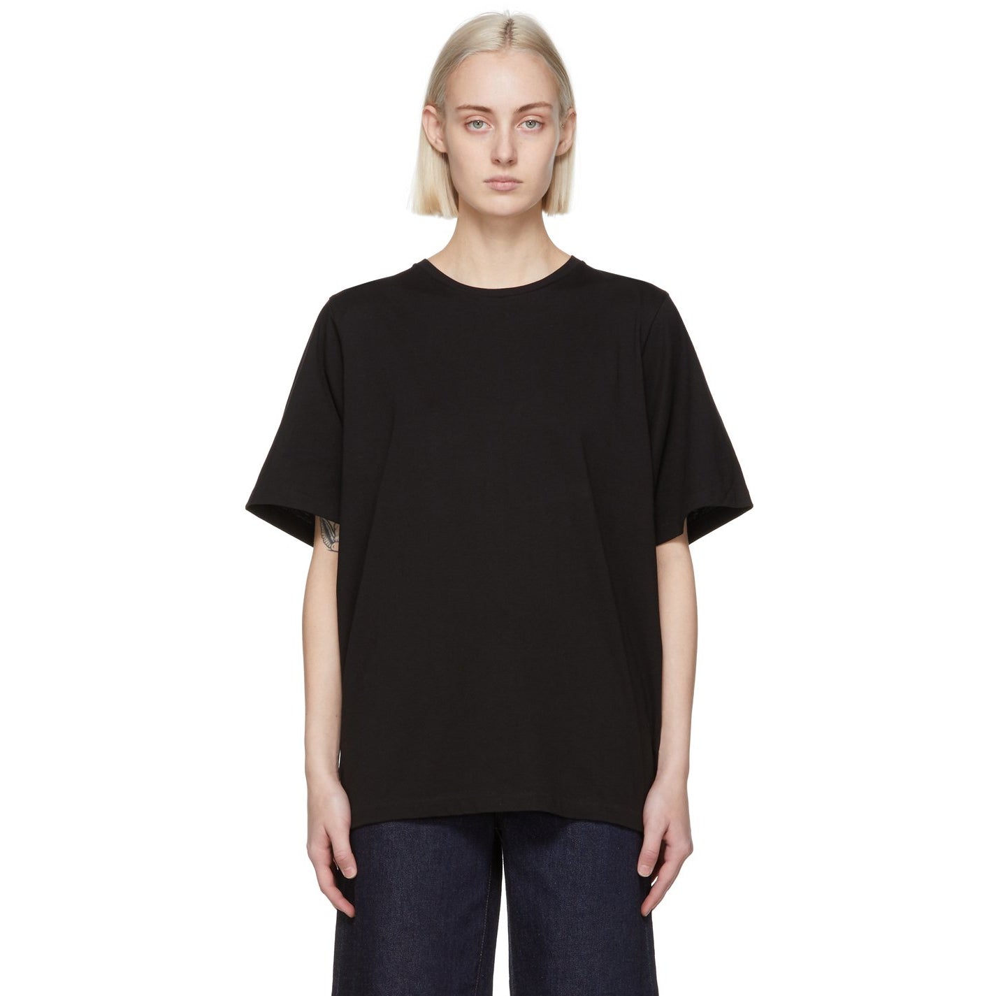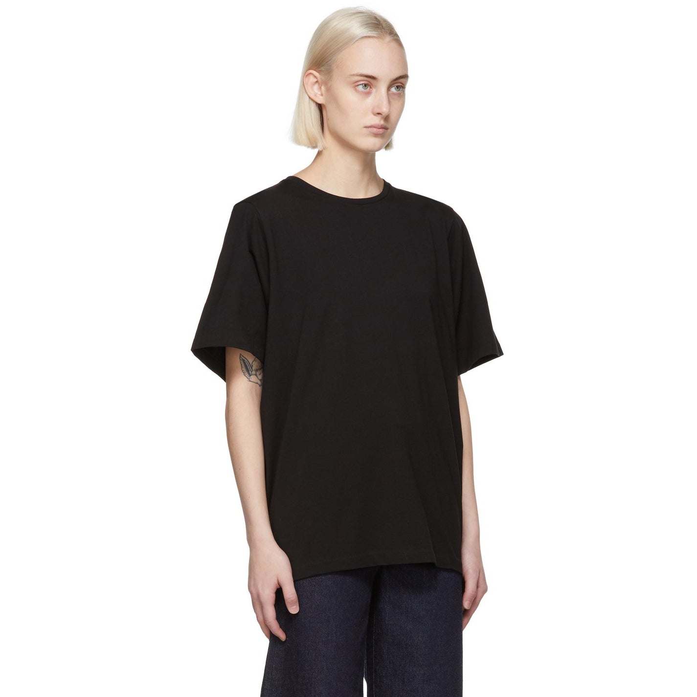 Short sleeve cotton jersey T-shirt in black. Rib knit crewneck collar. Supplier color: Black 100% cotton. Brand: Totême