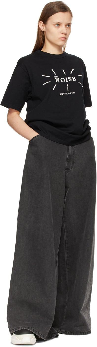 Short sleeve cotton jersey T-shirt in black. Rib knit crewneck collar. Text printed in white at front. Supplier color: Black 100% cotton. Brand: Undercover