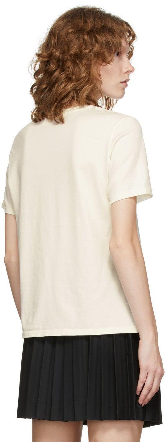Short sleeve cotton jersey T-shirt in off-white. Rib knit crewneck collar. Graphic printed in white, blue, red, and yellow at front. Part of the Undercover x Hello Kitty collaboration. Supplier color: Cream 100% cotton. Brand: Undercover