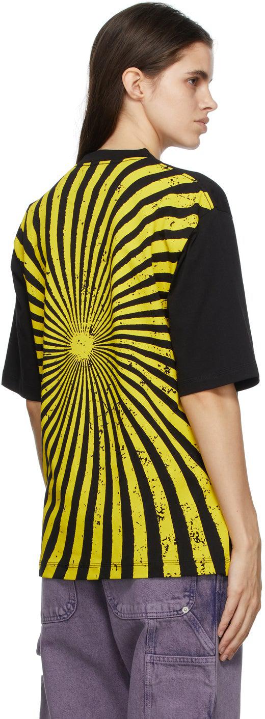 Short sleeve cotton jersey T-shirt in black. Rib knit crewneck collar. Text printed in yellow at front. Graphic printed in yellow at back. Supplier color: Black 100% cotton. Brand: Youths in Balaclava