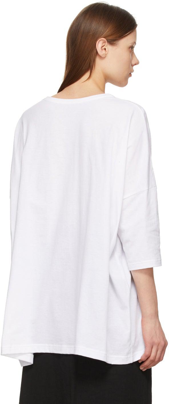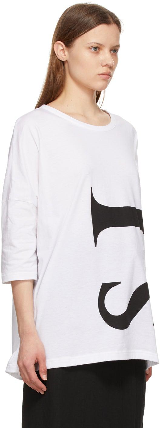 Short sleeve cotton jersey T-shirt in white. Crewneck collar. Logo printed in black at front. Dropped shoulders. Supplier color: White 100% cotton. Brand: Y's