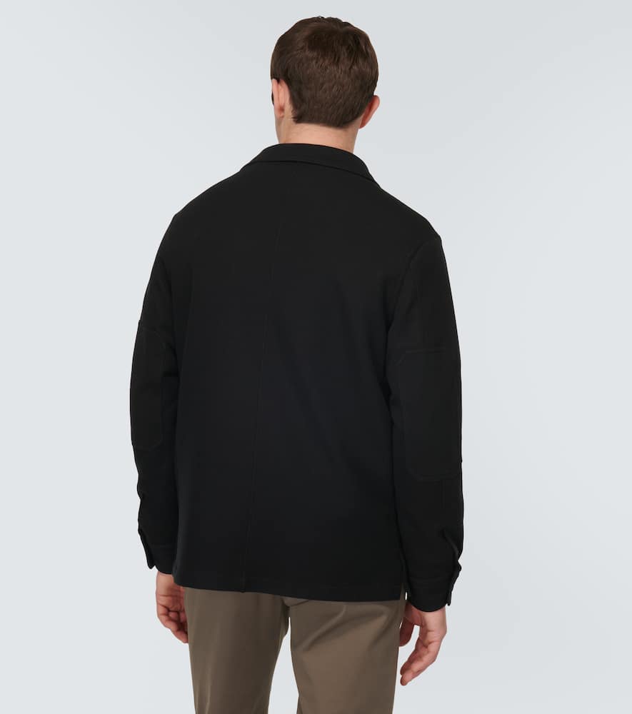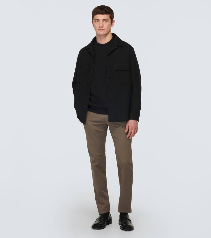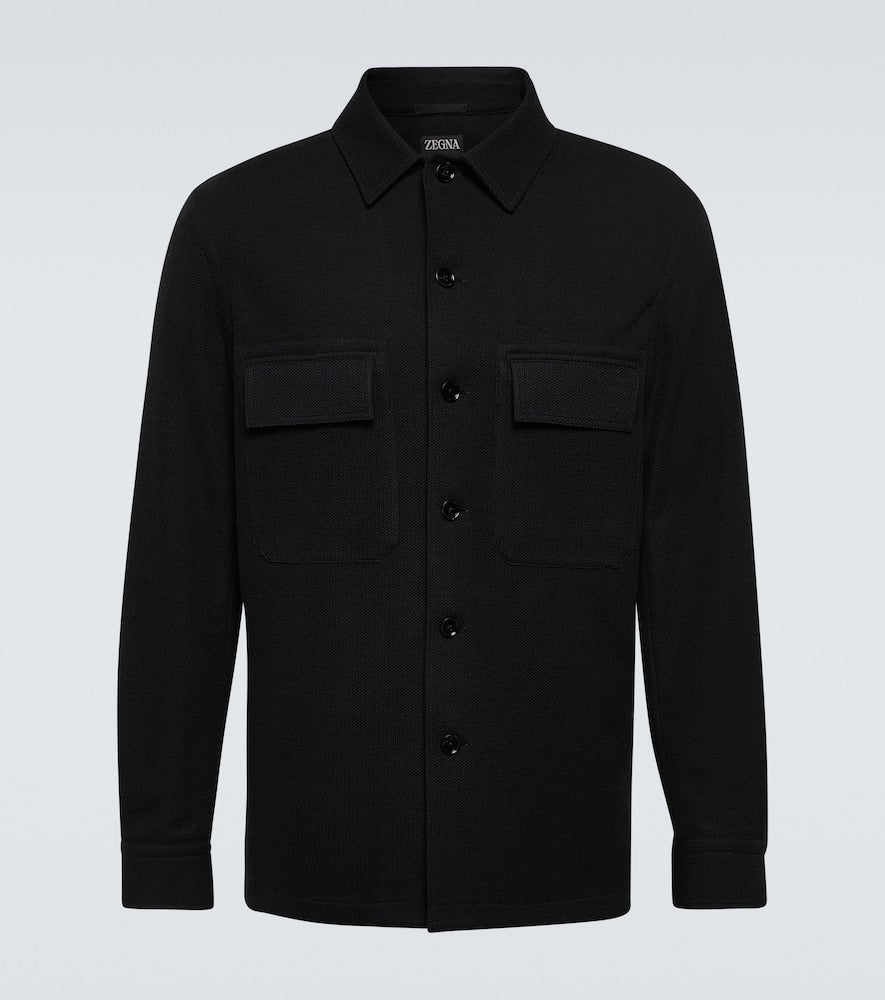 Material: 58% wool, 42% cotton. Care instructions: dry clean. Made in Morocco. Designer color name: Black. Lining: 100% polyester. Contains non-textile parts of animal origin. Utility jacket. Pockets: flap chest pockets. Closure: buttoned front. Collar: Cuban. Shop the latest mens Zegna Overshirts.