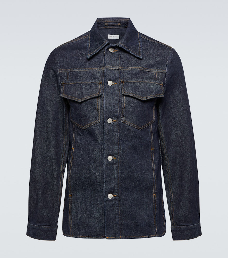 Material: 100% cotton. Care instructions: machine wash at 30 degrees. Made in Tunisia. Designer color name: Indigo. Closure: buttoned front. Pockets: flap chest pockets, side slit pockets. Cuff: two buttons. Denim jacket. Vent: double. Shop the latest mens Dries Van Noten Overshirts.