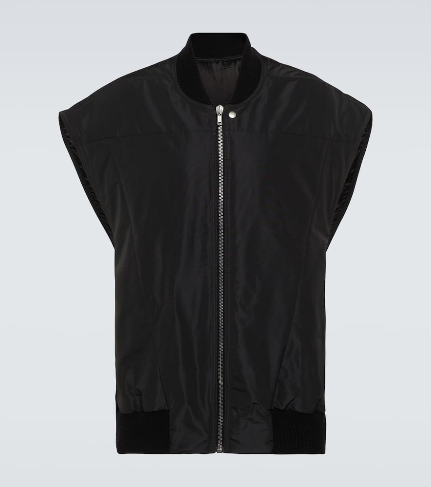 Material: 91% cotton, 6% elastomultiester, 3% rubber. Care instructions: dry clean. Made in Italy. Designer color name: Black. Lining: 53% viscose, 47% cupro. Material II: 97% cashmere, 3% wool. Closure: zipped front. Pockets: snap-buttoned pockets. Material III: 90% polyester, 10% acrylic. Shop the latest mens Rick Owens Gilets.
