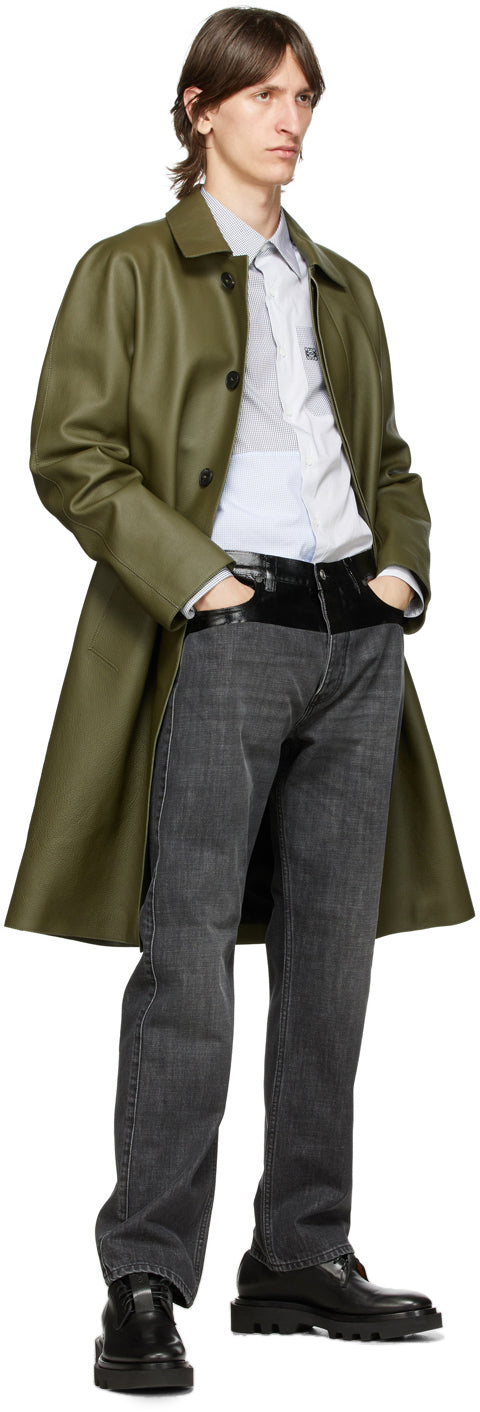 Relaxed-fit non-stretch denim jeans in black. Mid-rise. Fading throughout. Five-pocket styling. Belt loops at waistband. Tonal paint-effect stripe at front waistband and back pocket. Embossed tonal leather logo patch at back waistband. Button-fly. Antiqued silver-tone hardware. Supplier color: Black 100% cotton. Brand: Givenchy