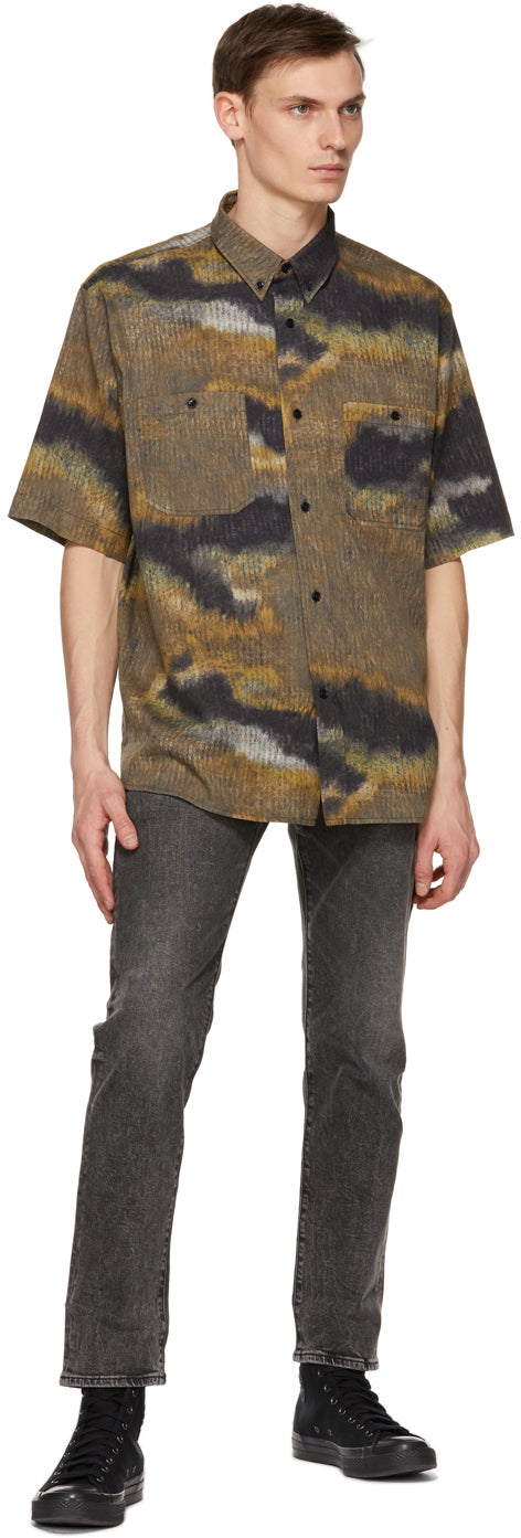 Tapered stretch cotton-blend denim jeans in grey. Mid-rise. Fading and whiskering throughout. Belt loops at waistband. Embossed leather logo patch in tan. Textile logo patch in red at back pocket. Zip-fly. Logo-engraved antiqued silver-tone and bronze-tone hardware. Supplier color: King bee 70% cotton, 28% lyocell, 2% elastane. Brand: Levi's