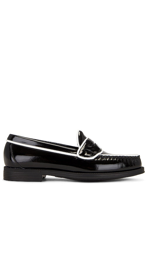 G.H.BASS Logan Piping Easy Weejun in Black. - size 11 (also in 8) G.H.BASS Logan Piping Easy Weejun in Black. - size 11 (also in 8) Patent leather upper with manmade sole. Made in USA. Penny keeper strap. Contrast trim. Approx 25mm/ 1 inch heel. GHBR-MZ12. BAZ3W464. Shop the latest in fashion from G.H.BASS