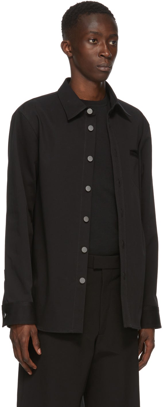 Long sleeve cotton canvas shirt in black. Spread collar. Button closure at front. Slit at chest. Partially concealed two-button barrel cuffs. Unlined. Silver-tone hardware. Supplier color: Black 100% cotton. Brand: Bottega Veneta