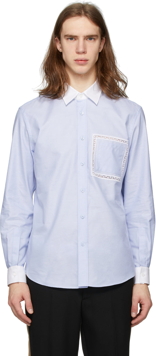 Burberry Blue Lace Detail Oxford Shirt - Burberry Blue Dentelle Détail Chemise Oxford - 버버리 블루 레이스 세부 옥스포드 셔츠