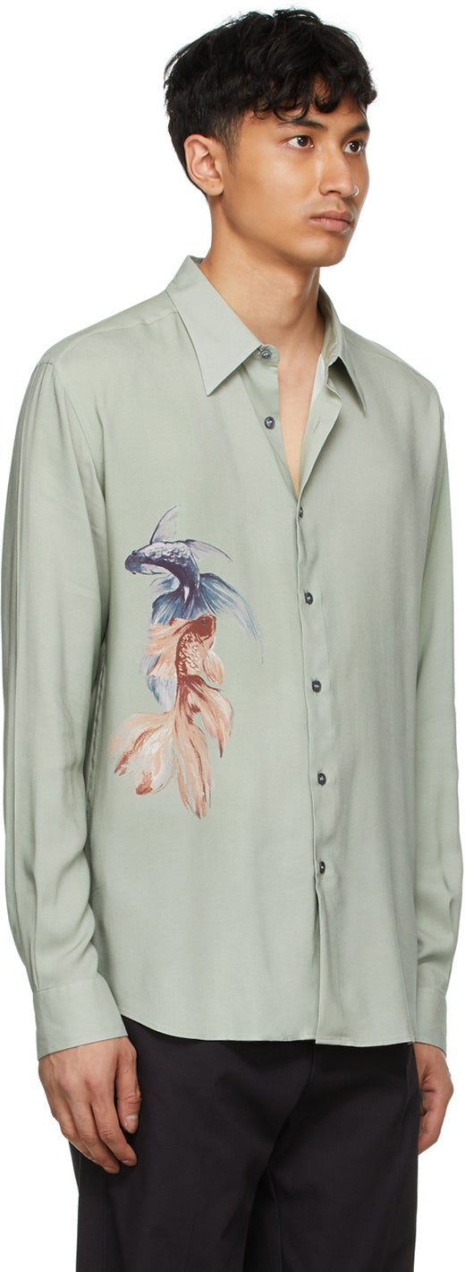 Davi Paris Green Fish Printed Shirt - Chemise imprimée poisson vert Davi Paris - 데이비 파리 녹색 물고기 인쇄 셔츠