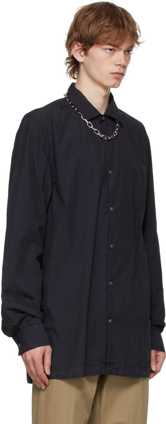 Long sleeve cotton and nylon-blend poplin shirt in black. Spread collar. Button closure at front. Two-button barrel cuffs. Vent at sideseams. Supplier color: Black 82% cotton, 18% polyamide. Brand: Dries Van Noten