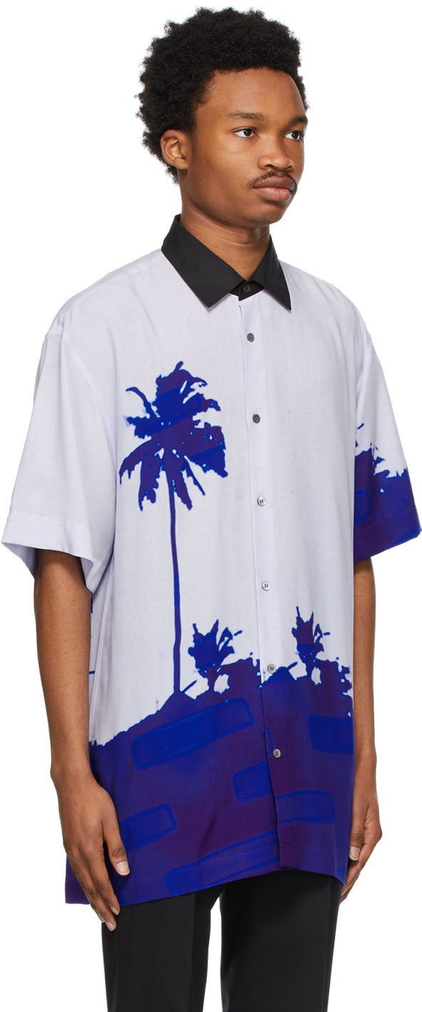 Dries Van Noten Blue Len Lye Edition Contrast Collar Graphic Short Sleeve Shirt