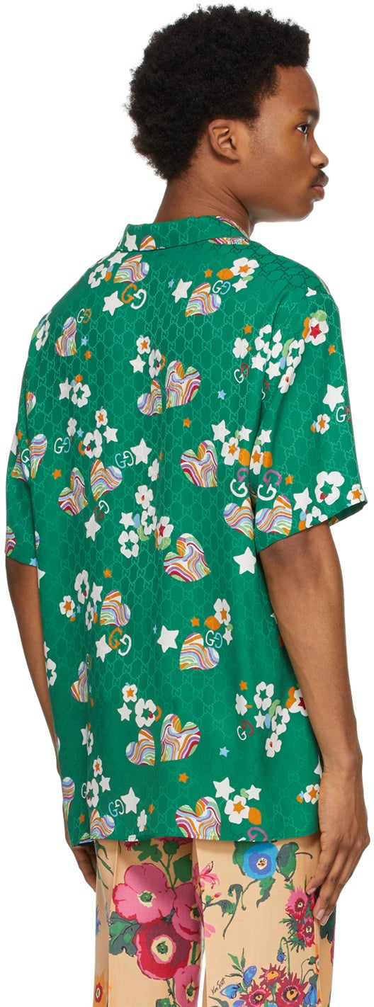 Gucci Green Silk GG Graphic Shirt - Chemise graphique GUCCI GREEN SILK GG - 구찌 녹색 실크 gg 그래픽 셔츠