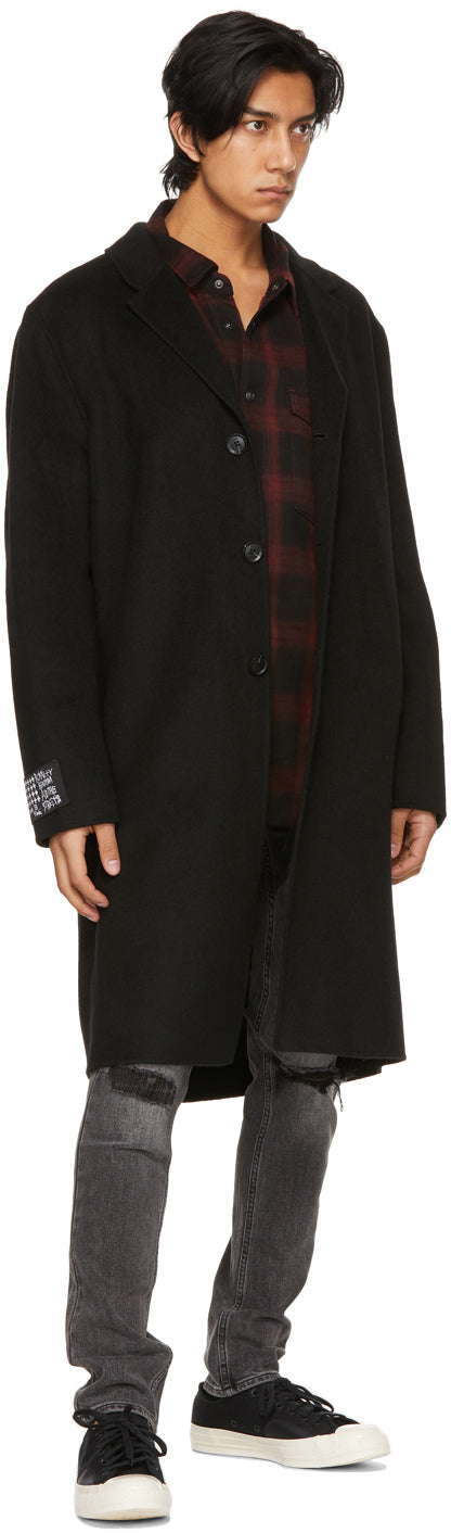 Long sleeve viscose-blend flannel shirt featuring check pattern in red and black. Spread collar. Press-stud closure at front. Flap pockets at chest. Text embroidered in red at front hem. Single-button barrel cuffs. Box pleat at back yoke. Logo embroidered in red at back hem. Logo-engraved gunmetal-tone hardware. Supplier color: Red 65% polyester, 32% viscose, 3% spandex. Brand: Ksubi