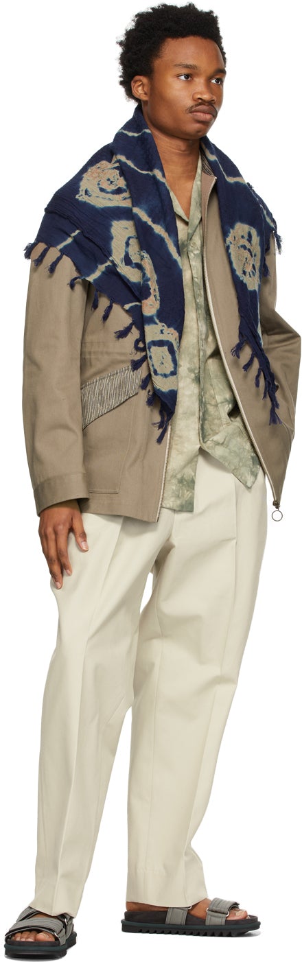 Short sleeve cotton and linen-blend shirt featuring tie dye pattern in tones of green. Open spread collar. Button closure at front. Patch pocket at chest. Patch pockets at waist. Tonal hardware. Each item is unique. Please note that coloration may vary. Supplier color: Green tie dye 50% cotton, 50% linen. Brand: Nicholas Daley