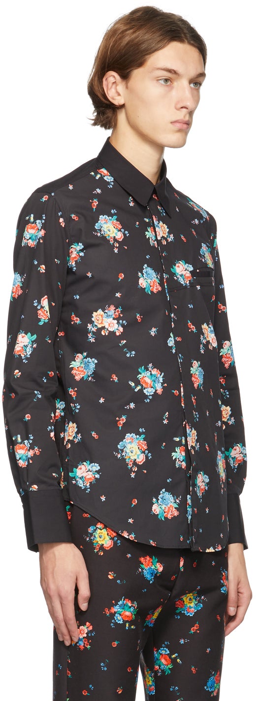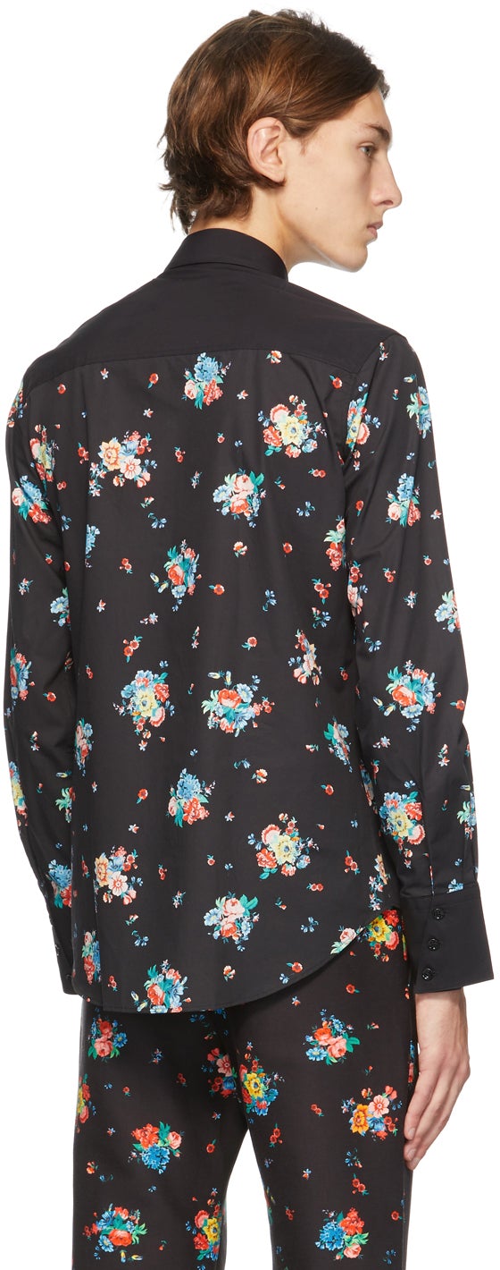 Long sleeve cotton poplin shirt in black featuring graphic pattern printed in multicolor. Spread collar. Concealed button closure at front. Welt pocket at chest. Three-button barrel cuffs. Shirttail hem. Supplier color: Multicolor 100% cotton. Brand: Paco Rabanne