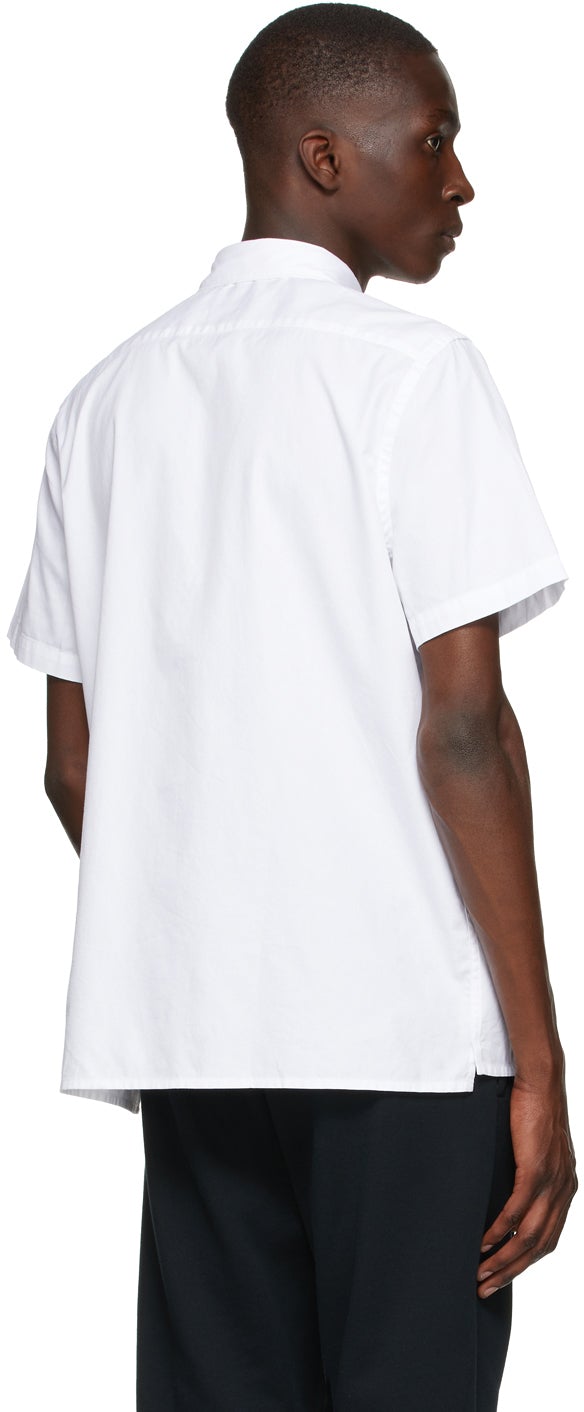 Short sleeve organic cotton poplin shirt in white. Spread collar. Button closure at front. Multicolor graphic patch at chest. Mother-of-pearl hardware. Supplier color: White 100% organic cotton. Brand: PS by Paul Smith