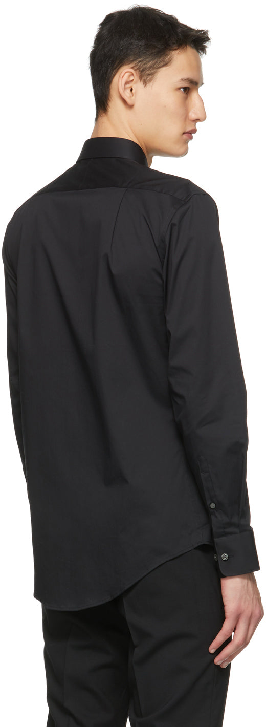 Long sleeve stretch cotton-blend shirt in black. Spread collar. Button closure at front. Adjustable two-button barrel cuffs. Shirttail hem. Supplier color: Black 66% cotton, 30% polyamide, 4% elastane. Brand: Tiger of Sweden