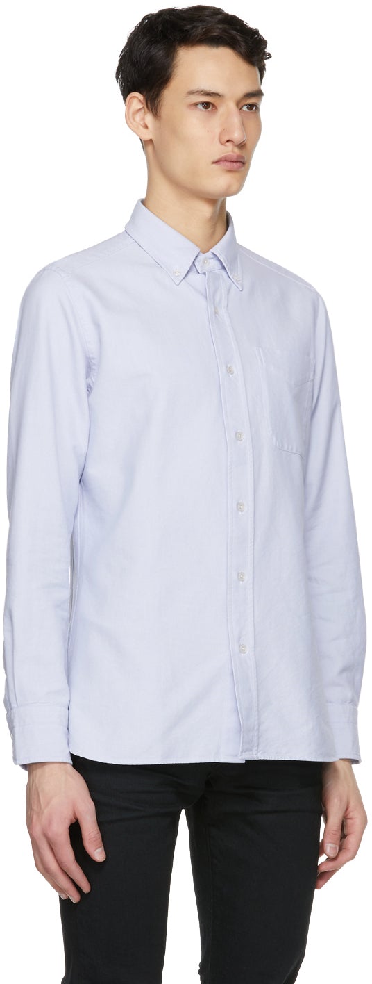 Long sleeve cotton Oxford cloth shirt in blue. Button-down spread collar. Button closure at front. Patch pocket at chest. Single-button barrel cuffs. Shirttail hem. Supplier color: Blue 100% cotton. Brand: TOM FORD