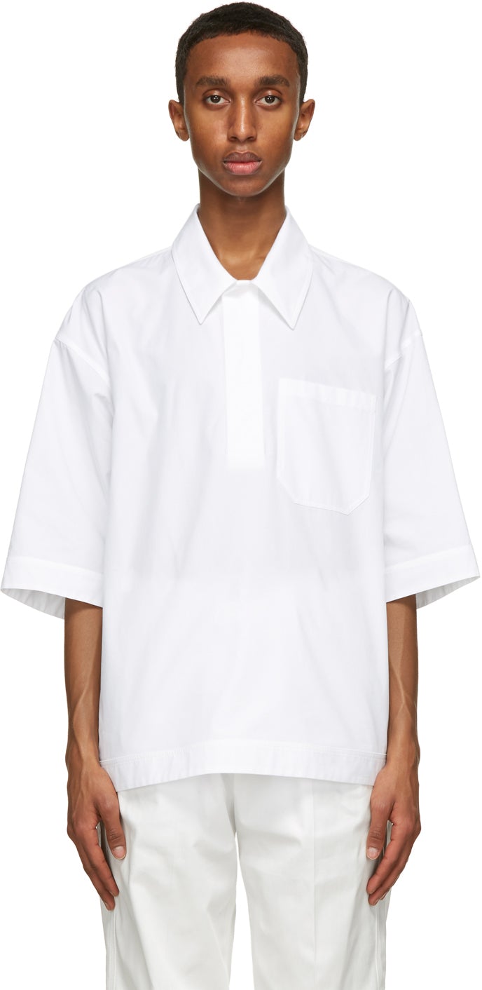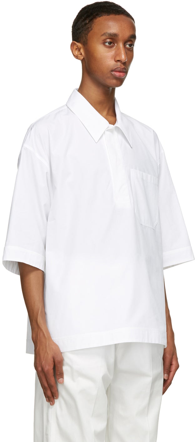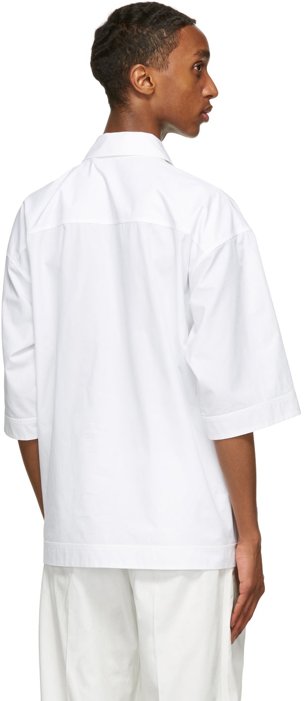 Short sleeve cotton poplin shirt in white. Spread collar. Concealed three-button closure at front. Patch pocket at chest. Vented side-seams. Supplier color: Optical white 100% cotton. Brand: Valentino