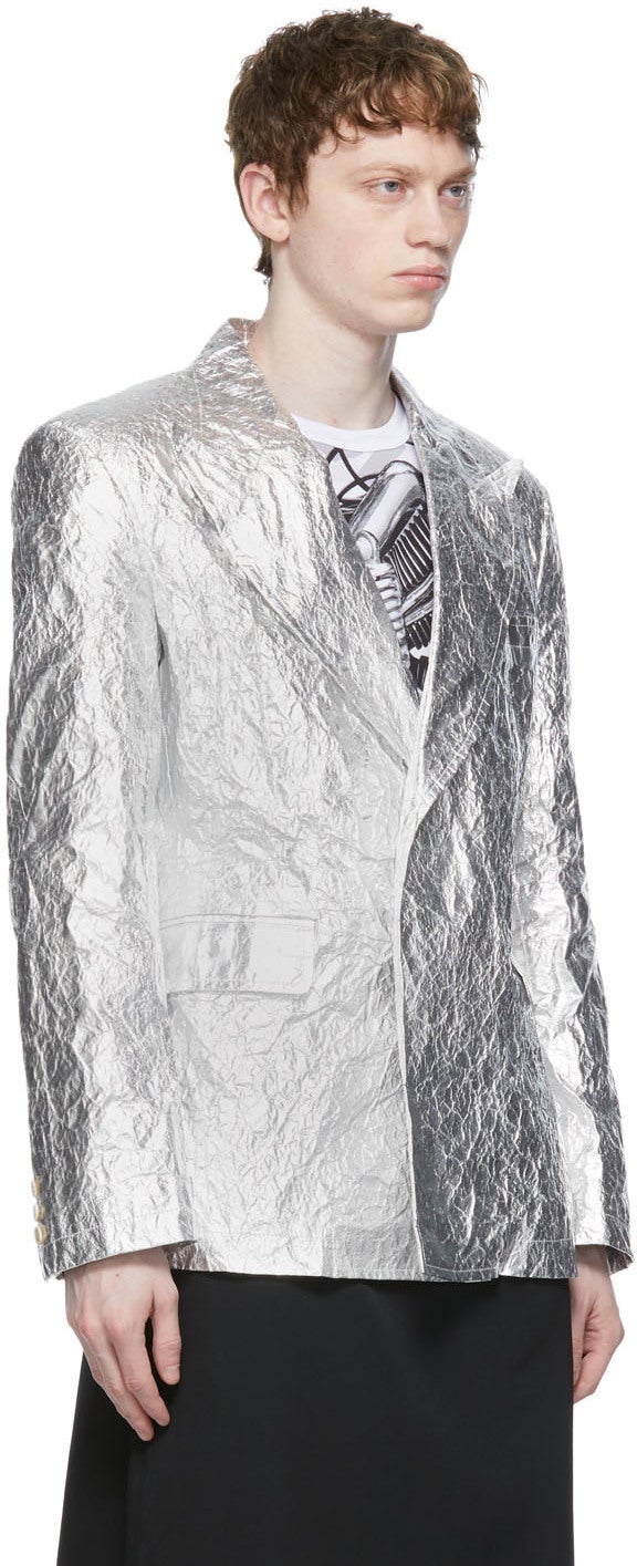 Comme des Garçons Homme Plus Silver Aluminum Cloth Blazer