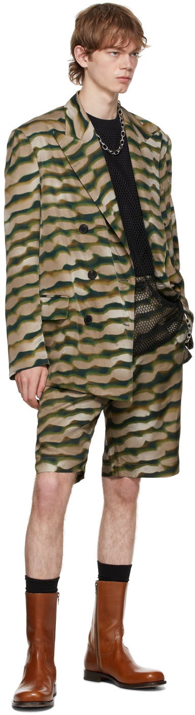 Dries Van Noten Khaki Len Lye Edition Satin Graphic Blazer
