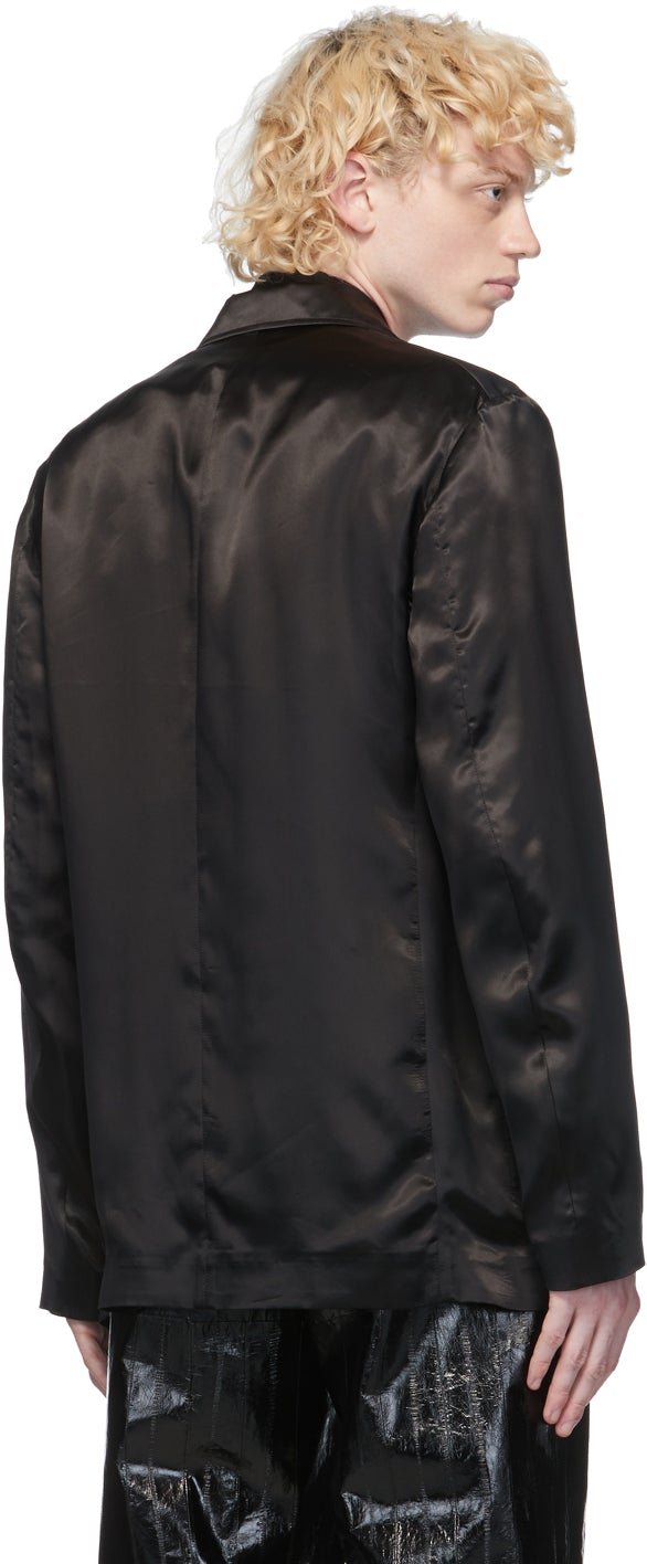 Long sleeve cupro satin blazer in black. Notched lapel collar. Button closure at front. Patch pockets at waist. Welt pockets at interior. Unlined. Supplier color: Black Body: 100% cupro. Trim: 60% viscose, 40% cupro. Brand: Dunhill