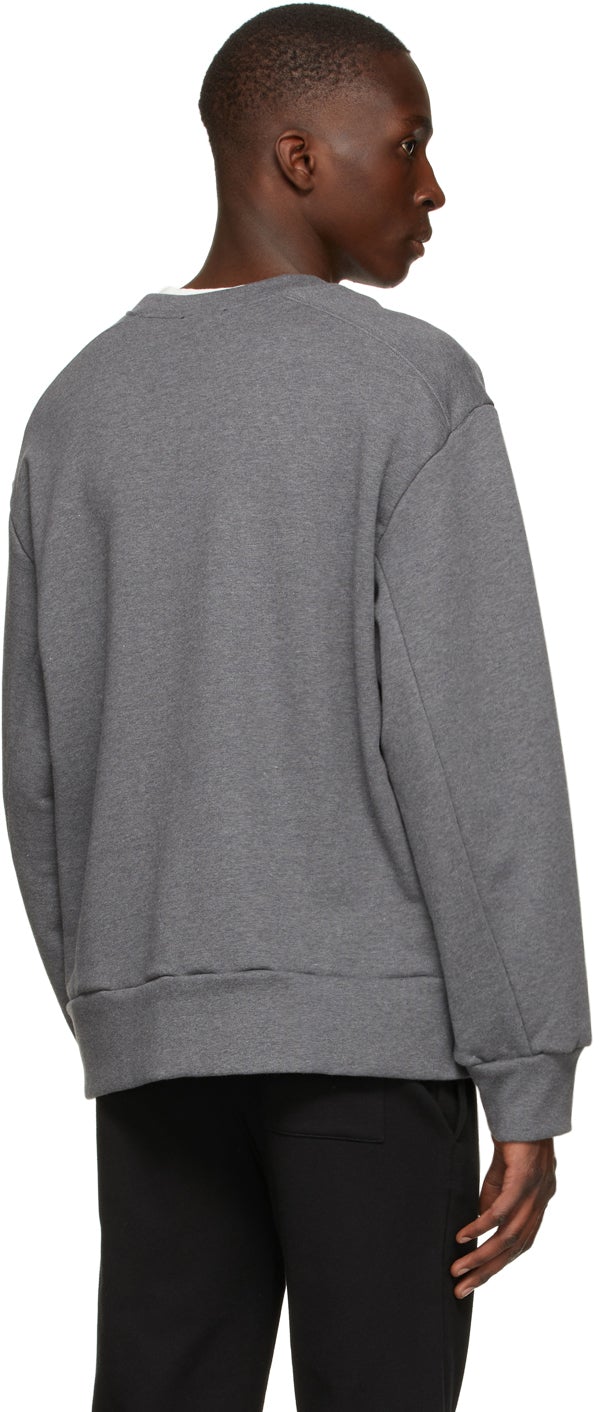 Long sleeve French terry sweatshirt in heather grey. Rib knit crewneck collar, cuffs, and hem. Logo printed in black at chest. Dropped shoulders. Supplier color: Heather anthracite 100% cotton. Brand: A.P.C.