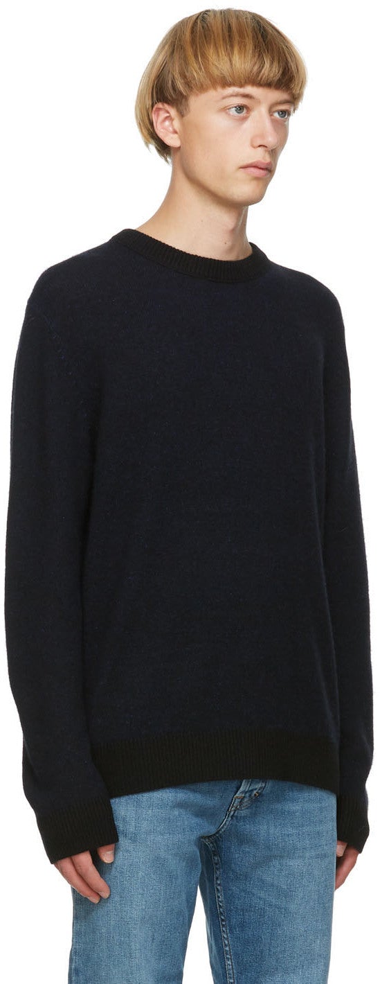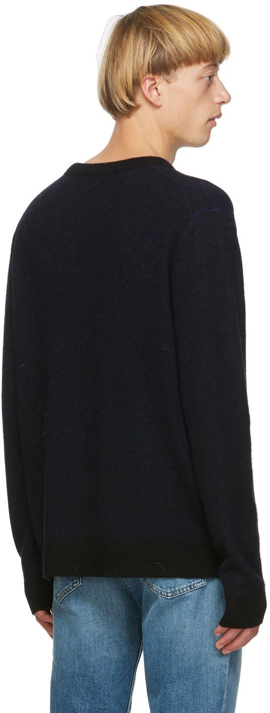Long sleeve knit cashmere sweater marled in tones of black. Rib knit crewneck collar, cuffs, and hem. Back face in purple. Supplier color: Black/Purple 100% cashmere. Brand: Acne Studios