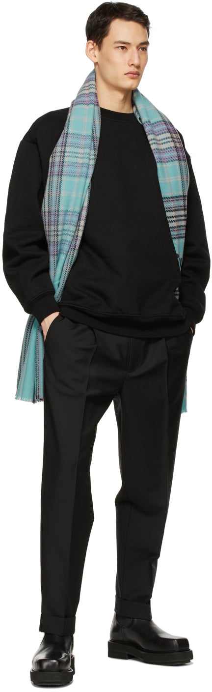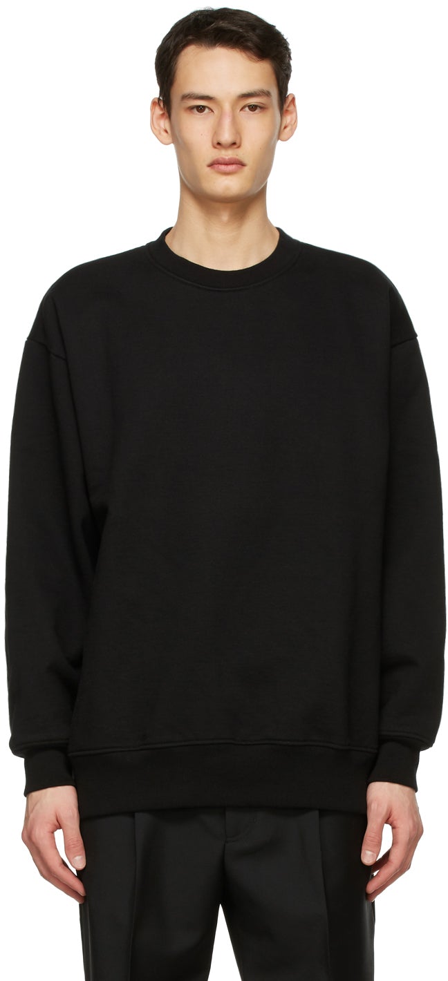 Long sleeve cotton-blend fleece sweatshirt in black. Rib knit crewneck collar, cuffs, and hem. Textile logo flag in pink at side-seam. Supplier color: Black 50% cotton, 50% polyester. Brand: Acne Studios