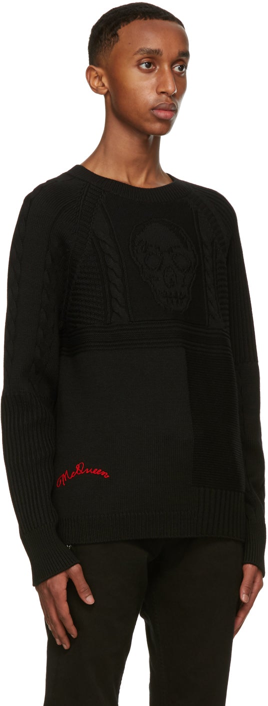Alexander McQueen Black Wool Embroidered Logo Sweater