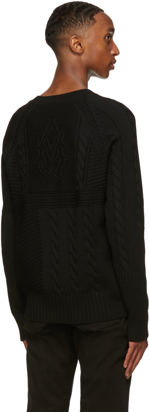 Long sleeve cable knit wool-blend sweater in black. Rib knit crewneck collar, cuffs, and hem. Logo embroidered in red at front. Supplier color: Black/Red 49% acrylic, 49% wool, 2% polyester. Brand: Alexander McQueen