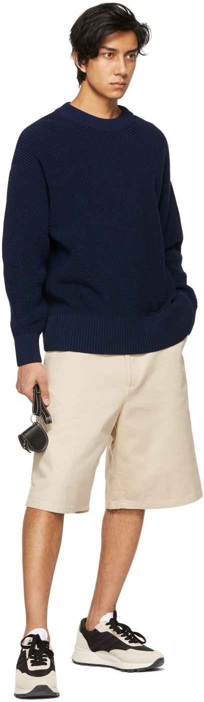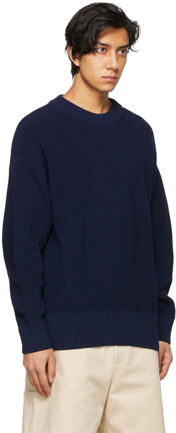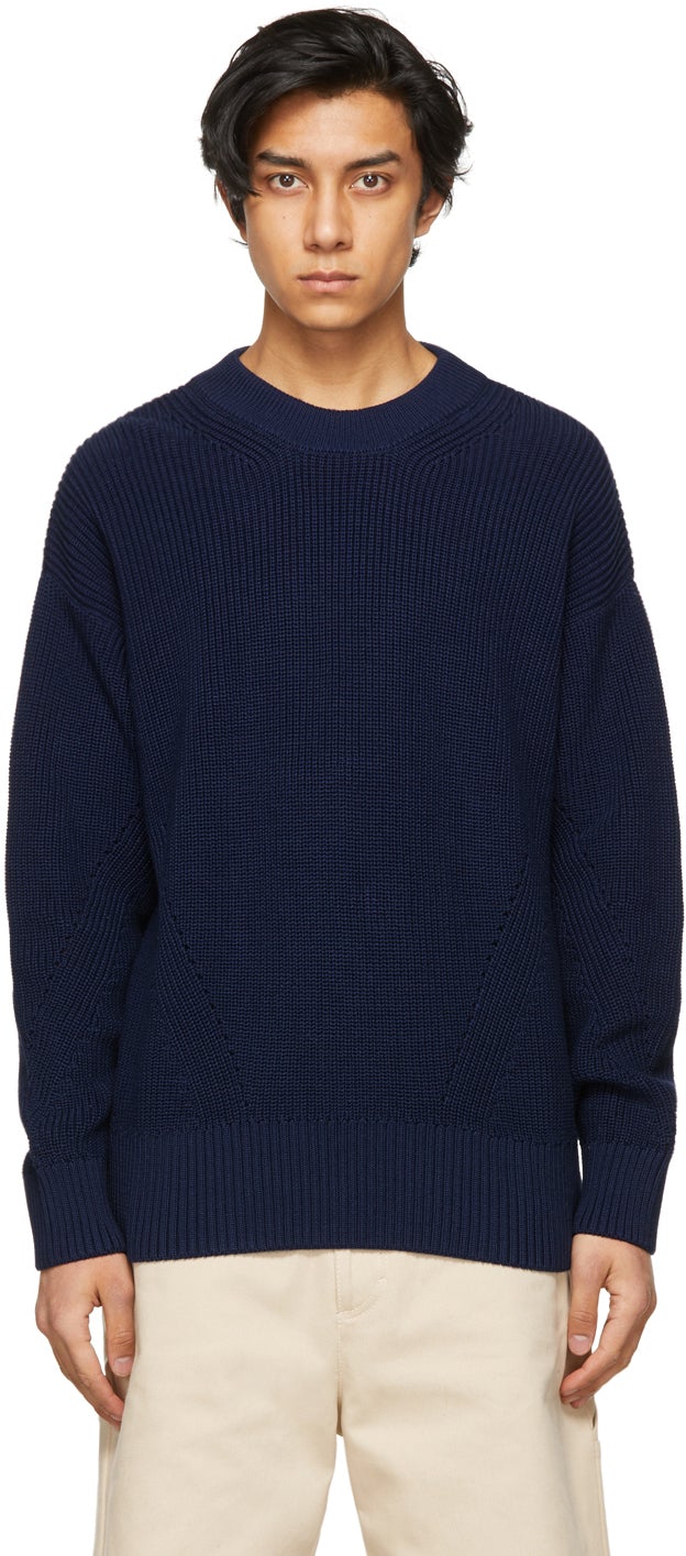 AMI Alexandre Mattiussi Navy Ribbed Boxy Sweater
