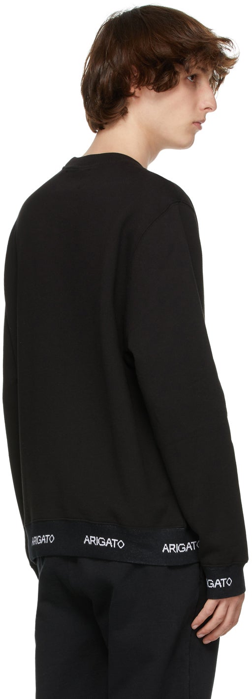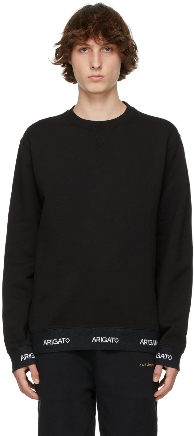 Long sleeve organic cotton fleece sweatshirt in black. Rib knit crewneck collar. Jacquard knit logo pattern in white at rib knit cuffs and hem. Supplier color: Black 100% organic cotton. Brand: Axel Arigato