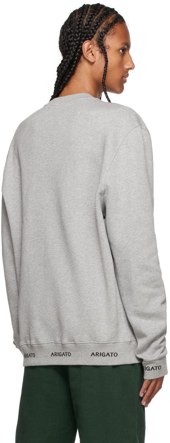 Long sleeve organic cotton fleece sweatshirt in heather grey. Rib knit crewneck collar. Jacquard knit logo in black at rib knit cuffs and hem. Supplier color: Pale grey 100% organic cotton. Brand: Axel Arigato